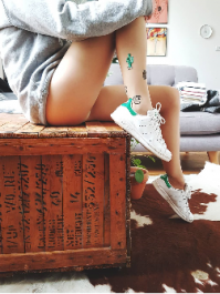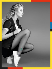 Egy villám, egy szív és egy rúzs motívum a bokánál, csillagocskák a vádli magasságában és „Oh jeh” felirat a bal combon. Olyan magasan, hogy csak miniszoknyában vagy shortban látszik. A testszínű változaton is fekete a minta. Kivéve a rúzs esetén, amely tűzpiros. „Ó igen!” Ez az, amitől aztán igazán különleges a Lippy.